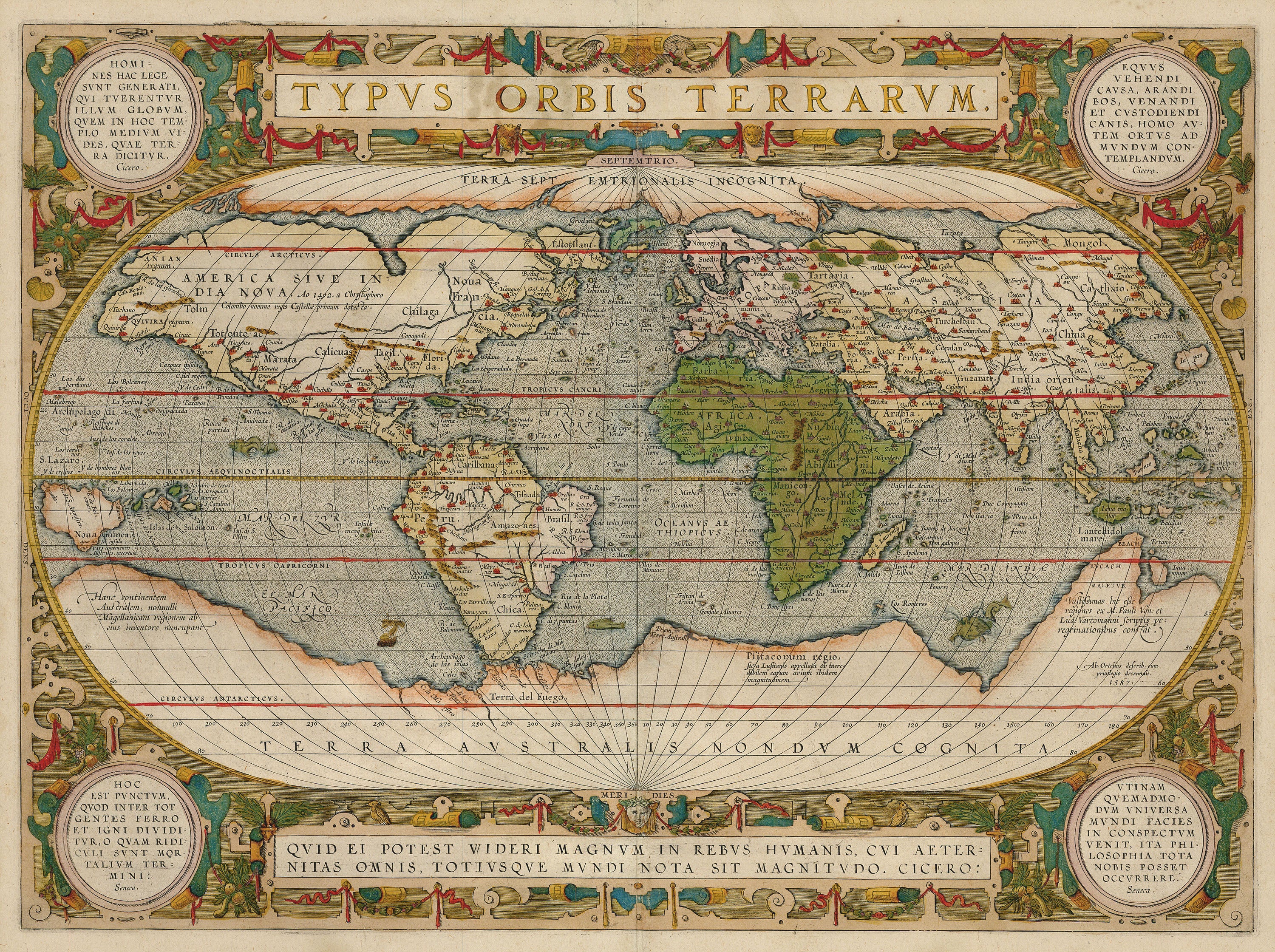 Map world authored by Abraham Ortelius, in his Theatrum Orbis